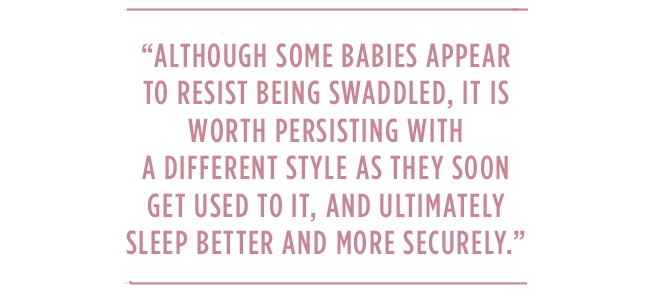 Although some babies appear to resist being swaddled, it is worth persisting with a different style or technique, as they soon get used to it, and ultimately sleep better and more securely.