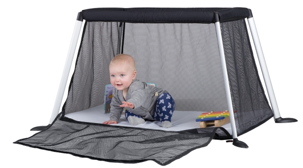 The phil&teds traveller weighs in at only 2.8kg – lighter than your baby! Zip open the side for a handy play zone, and zip it back up for sleep time. Made from oeko-tex fabrics which are gentle on delicate skin, the traveller is safe and comfy. Assembly is simple and quick, and it comes with a self-inflating mattress and fitted sheet. $199, philandteds.com.