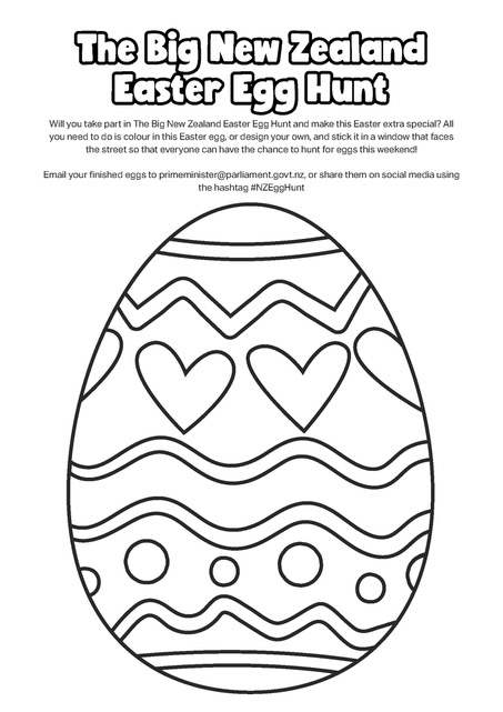 Join the Big New Zealand Easter Egg hunt introduced by NZ Prime Minister Jacinda Ardern. While in COVID-19 lockdown over Easter 2020, we can still brighten our local community by popping images of Easter eggs in our front windows for the children in the neighbourhood to spot on their walk. Download this image or create your own and be part of the fun!
