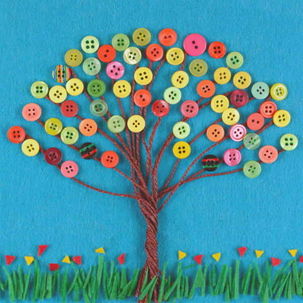 Gather up some buttons and wool and create a blossoming tree! You could also just cut out small circles of paper, or use scrunched up bits of tissue paper to the same effect.