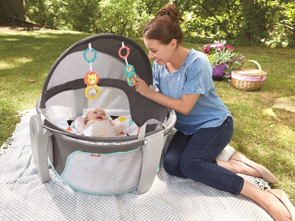02/08/2018 -Both myself and our 3 week old little man have enjoyed the Fisher-Price Baby Dome. We've had to do some cross-country traveling very early in his life and having the Dome made it so easy to have a safe play space wherever we went. It was very easy to pop open straight from the box and fold down for easy storage and travel. I can see how good it's going to be to take to the beach and the park as the weather gets better and to be able to use on our deck and to have the sun shields gives a new mum less to worry about. Even though it's a little too early for the hanging toys to be played with I know that they will capture his attention and help with his eye focus and development as the weeks pass. I'm not sure how it would last on damp wet grounds through winter as the base and mat is right on the ground, I do find the Fisher-Price Baby Dome is super functional and while soft and gentle for babies, it's durable and easy to transport and use in all sorts of places and circumstances. I would recommend this to anyone who wants to get out and about with their new family member.