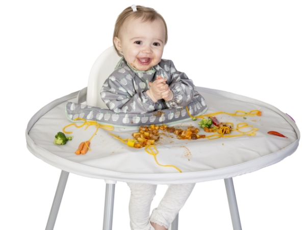 Designed by a mum of three, the Tidy Tot Bib and Tray Kit comprises a wipe-clean tray and coverall bib that fit together over highchairs or booster seats to completely eliminate the gap between baby and highchair. It protects baby, highchair and floor from food mess and spills, saying goodbye to stained clothes, endless washing and constant cleaning!