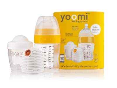 The yoomi 3-in-1 feeding system is a premium easi-latch bottle, a travel warmer and a bedside warmer in one compact and stylish package.