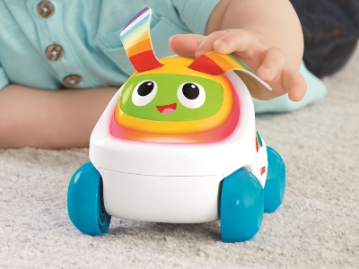 Toddlers zip, zoom, shimmy and shake through play time with Bright Beats™ Buggies! With playful melodies and bright lights to stimulate baby's senses, these easy-to-maneuver, free-wheeling cars are perfect for playtime on the go. When babies push on each character's face, they'll be rewarded with bright lights and fun songs & sounds—a great intro to cause and effect! Plus, kids can boost their gross motor skills as they crawl after their buggie.