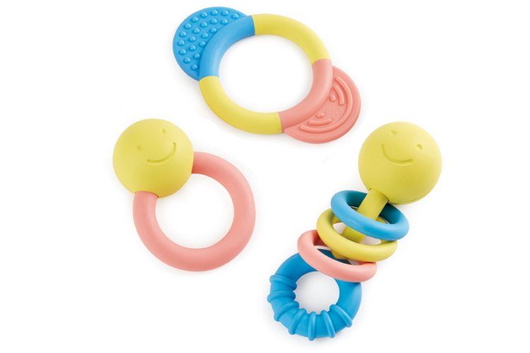 Hape Rattle & Teether Collection - Made from a safe, rice-based material, this collection of sensory toys helps babies take their first exploratory steps. Designed to be held by little fingers.