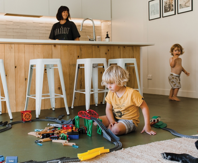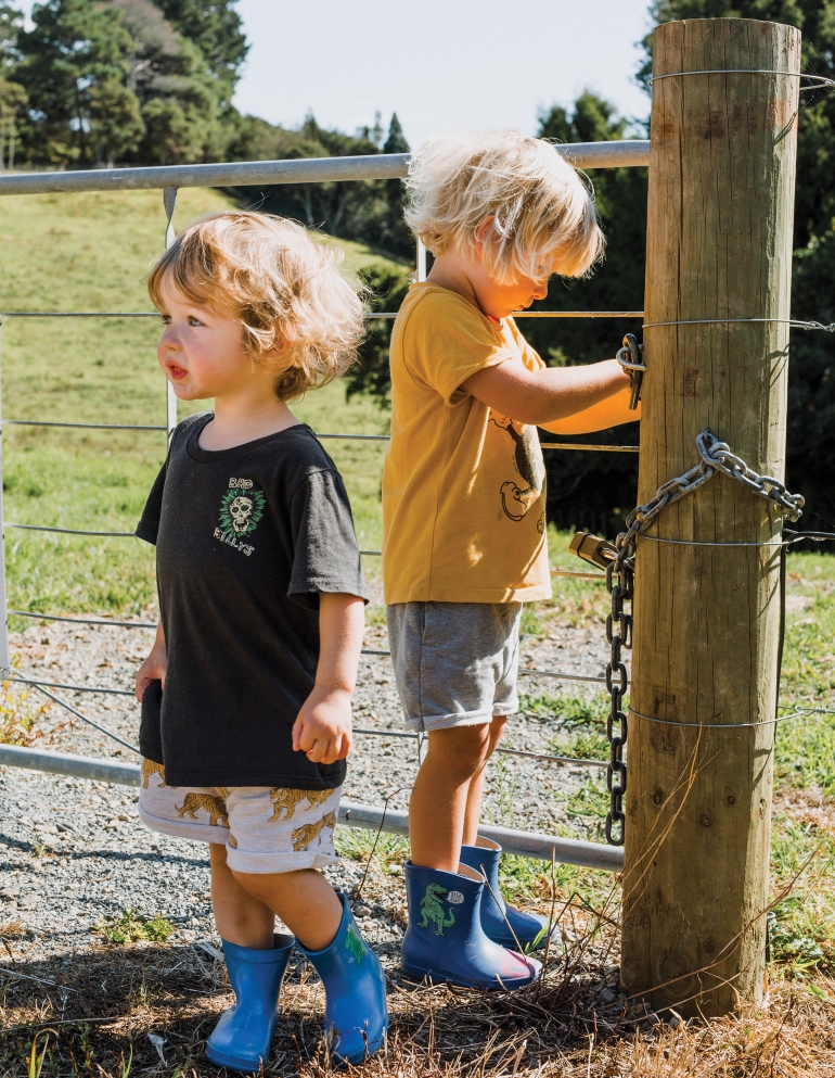 Parenting is dynamic. It’s not static but full of twists and turns. “I’m still learning how to parent my children. I have realised that they have very different personalities. Dusty is the charming one, the comedian. Mickey’s a thinker and more emotional. We’re always discovering new sides to them. For example, I didn’t think Mickey was an ‘outside kid’, but now he’s into motorbikes, bush walks and all that sort of stuff I didn’t know about him. He thrives going out on the farm with his Pop.” Lucy continues “We’ve seen a huge change in both boys’ since moving here (from Mount Maunganui). Especially in their imaginations, which have been amplified by the outdoor space. They’re less bored, and they behave better when surrounded by nature. That aspect of parenting is heaps nicer.”