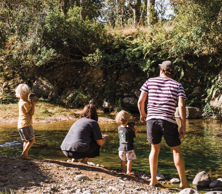 We changed tact and moved the party outside. When we stepped out of the lounge and into the great outdoors, the change in mood was like night and day. From chaos to calm, the kids were now noticeably more at ease, so we ambled down a track to the creek. Yes, these boys have their very own river to explore, complete with a water hole for swimming. It’s idyllic and I was already making a mental note to check TradeMe for rural properties to relocate my own family to.