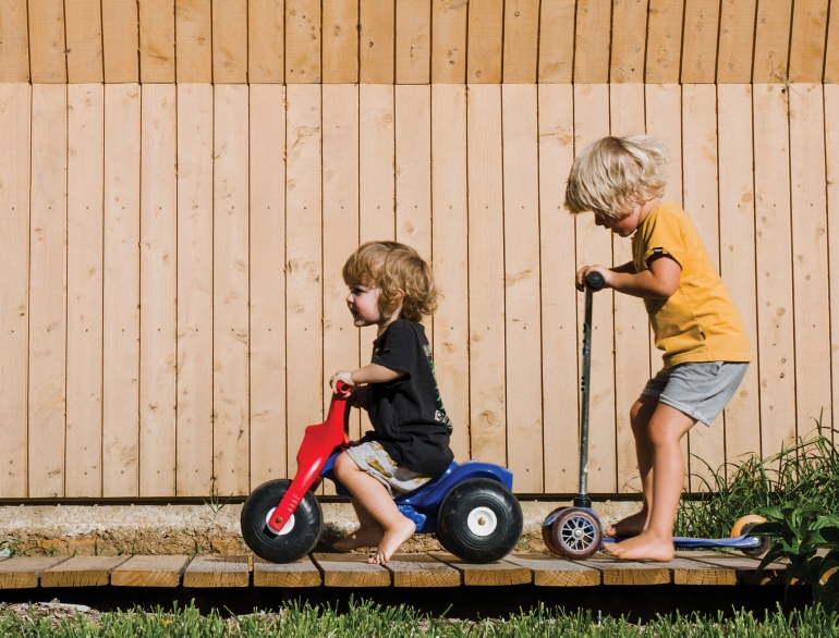 Photographer Alice and I arrived at the Burkes’ home at 4pm (what were we thinking?) and witnessed first-hand the power of nature to soothe the soul and calm the child. We’re not in the habit of doing family interviews and photoshoots during the witching hour, but the Burkes are busy people, so fitting into their schedule was paramount. It was the usual 4pm behaviour at play – nothing out of the ordinary – but as you can imagine, Dusty Kimber, aged two, and Mickey Memphis, almost five, were hardly in the mood for a family portrait!