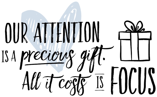 Our attention is like gold. In this busy time of addictive apps and tantalising technologies, Time Well Spent founder Tristan Harris frames it: “we are in an arms race for our attention”. Where will we put our attention? Tasting FOMO as we view someone else’s life on social media? Trying to finish that report for work as we feverishly defrost something for dinner? (Gulp: half listening to a child’s reading homework as we fold washing?) Or will we gift our full attention – especially to the most vulnerable and neurologically deserving members of our household?