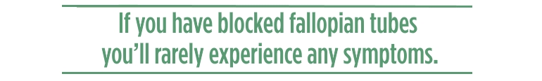 If you have blocked fallopian tubes you’ll rarely experience any symptoms. One kind of blockage which is called hydrosalpinx and is caused by fluid can cause pain in your lower abdomen but not every woman suffering hydrosalpinx will experience this pain.