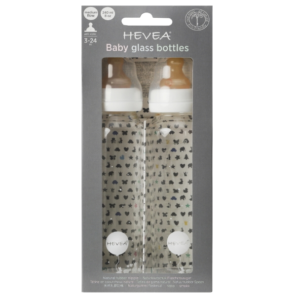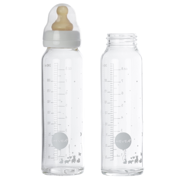 The Hevea Baby Bottle is made from the highest quality, thermal shock resistant borosilicate glass. It comes with a natural rubber nipple in medium flow, screw thread, and cap.