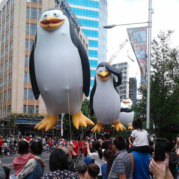 - Focus on the happy memories, not the horrors. Christmas (even in late November) does strange things to people. I saw things I would have rather not have seen – ill-fitting costumes, ill-advised lycra asked to stretch too far, clashing colours, forced merriment – but I choose not to dwell on these. In amongst it all was a school of middle-age jellyfish. I have no idea who these women represented, or what jellyfish have to do with Christmas, but they were simply stunning in their flowing blue and teal tule costumes, and they mesmerised me with their enthusiasm. There was something about the way their tentacles flailed out behind them that assured me our community spirit is alive and well, and I was proud to be there celebrating. As for my four-year-old, he was understandably more taken by the Star Wars characters, and how close he came to touching them. And he was totally in awe of the inflatable Madagascar penguins. This whole hot sweaty mess of a day was all worth it just to see his face as he tried to process the sight of these four cheeky penguins, as tall as buildings, happily bobbing down Queen Street.